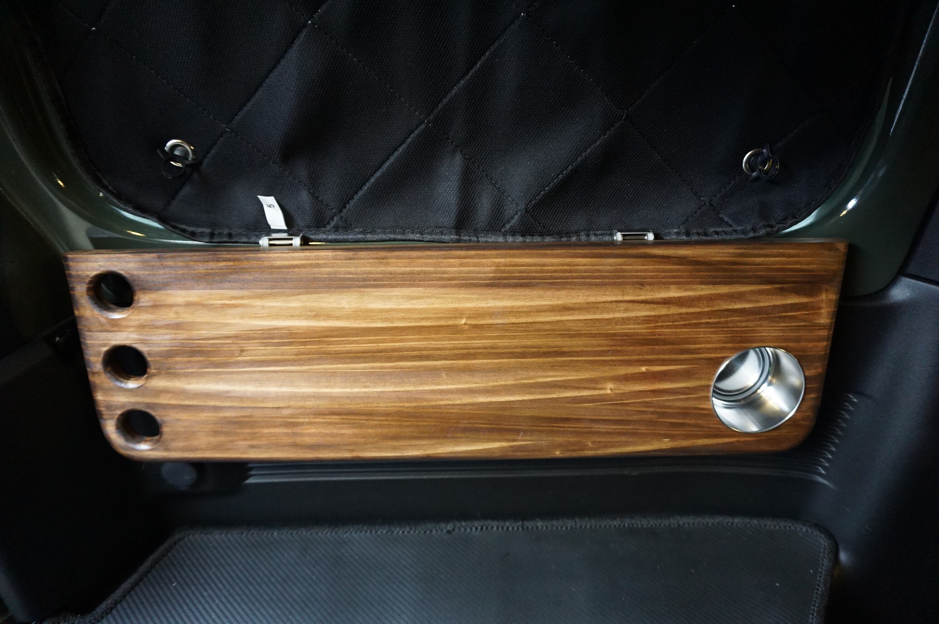 写真で確認出来ると思いますが、後部座席を立てたまま折り畳みが出来ることや、テーブルを展開したまま座席を倒したり出来るようかなり攻めた規格で設計しております。